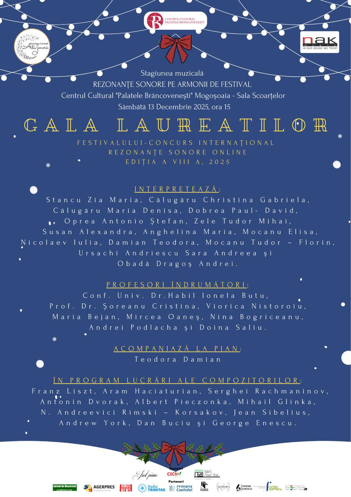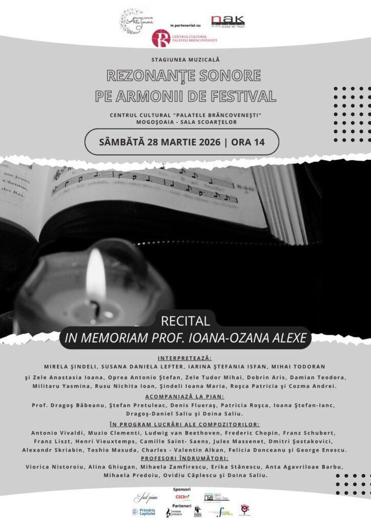 Stagiunea de Recitaluri „Rezonanțe Sonore pe Armonii de Festival” Ediția a VI-a Recital 25 Octombrie 2025 Recital „TIneri interpreți în afirmare” Recital 22 Noiembrie 2025 Recital „Sunetul Toamnei” Recital 13 Decembrie 2025 Recital Gala Laureaților Festivalului-Concurs Rezonanțe Sonore 2025 Recital 24 Ianuarie 2026 Recital Duo Catharsis Recital 28 Martie 2026 Recital In memoriam Prof. Ioana-Ozana Alexe Recital 19 Aprilie 2026 Recital Tineri interpreți în afirmare